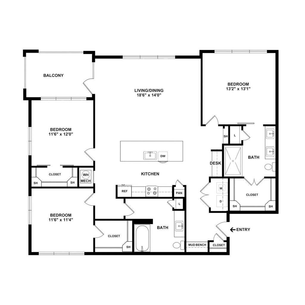One90 Firewheel offers 1 to 3 Bedroom apartments starting from $1,354 and having 624–1,665 sq ft. Here is the current pricing and availability: