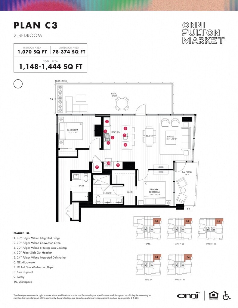 Onni Fulton Market offers Studio to 3 Bedroom apartments starting from $2,298 and having 379–1,095 sq ft. Here is the current pricing and availability: