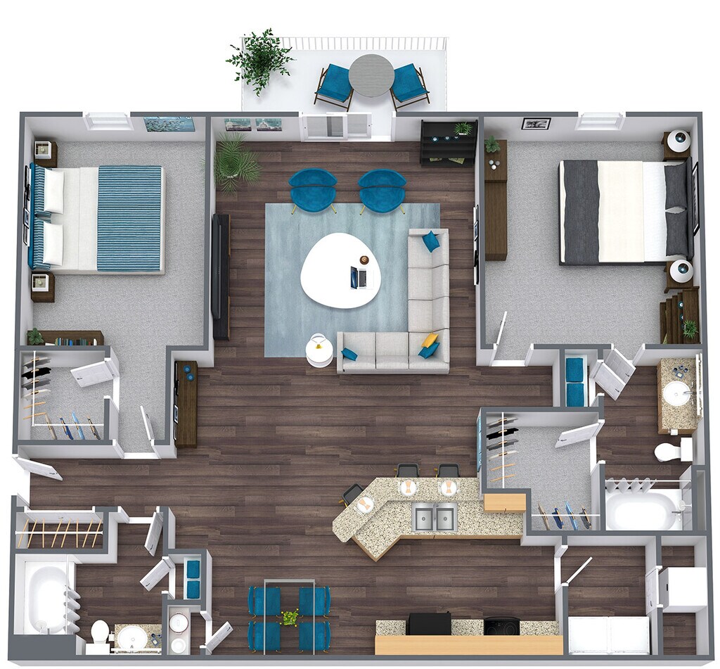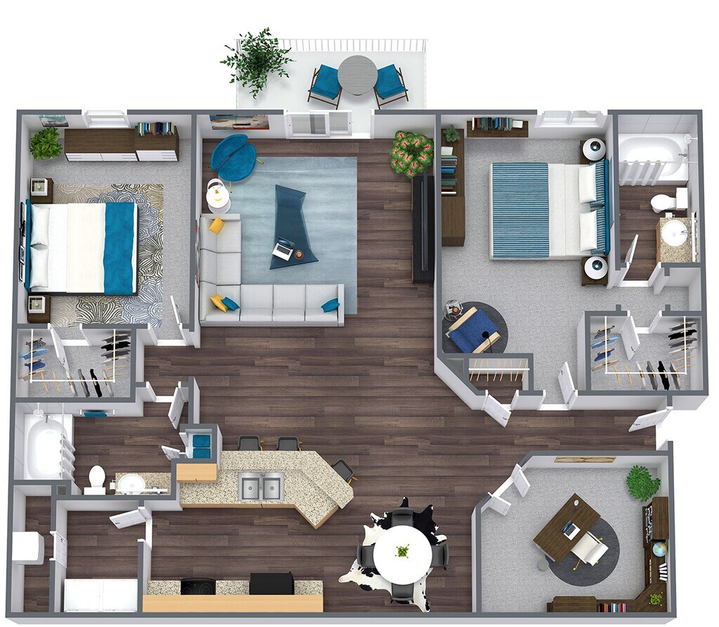 Our spacious, floor plans and state-of-the-art amenities provide residents with the gold standard of modern apartment living. We embody the vibrant lifestyle you've been seeking with elegant accents, undeniable conveniences, and top-notch customer service. Apartments boast fully-equipped kitchens with granite countertops and breakfast bars, large walk-in closets, and personal patios or balconies. Our pet-friendly community also offers a luxury swimming pool and fitness center. Schedule your personal tour with us today.