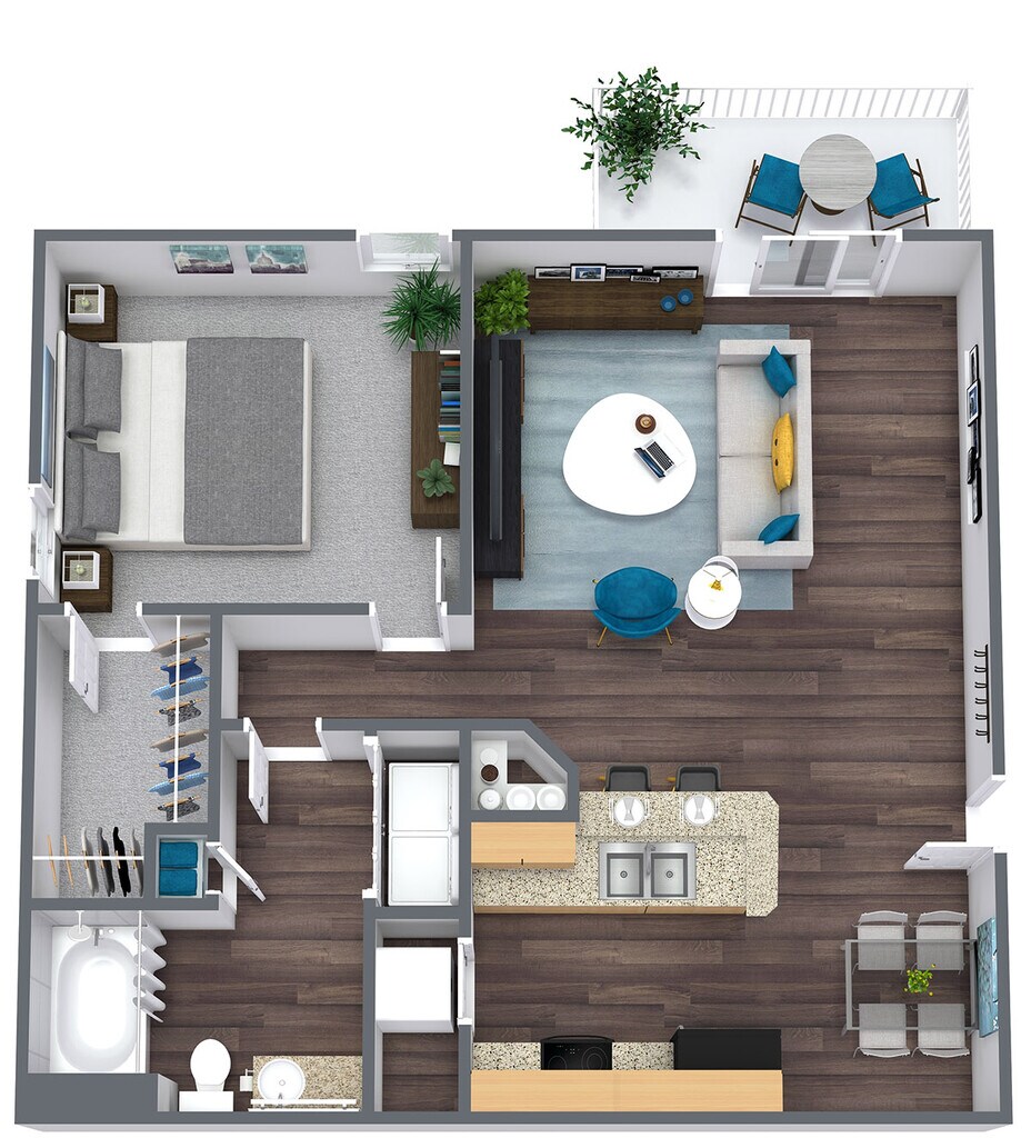 1 Bed, 1 Bath, 860 sq ftModel Gallery