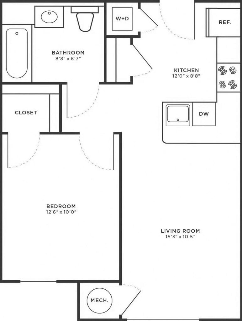 Apartment Model: 1 Bed/1 Bath-A1Call For Rates1 Bedroom, 1 Bath, 575 sq ftUnavailable![]() - 1 Bed/1 Bath-A1 - Floorplan 1
