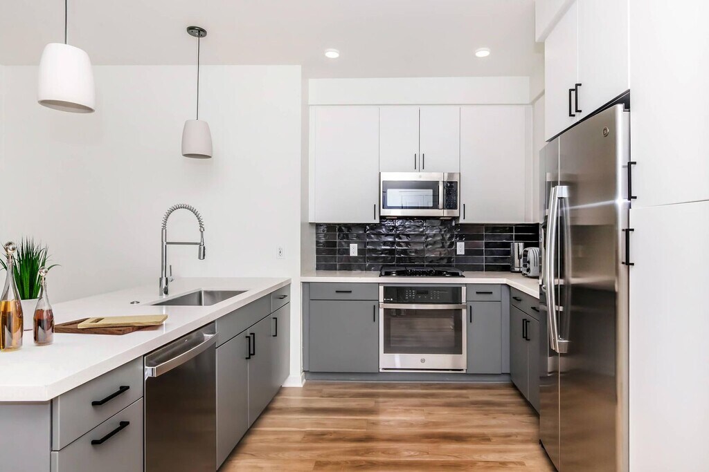 - Modern Two-toned Cabinetry with Matte Black Hardware