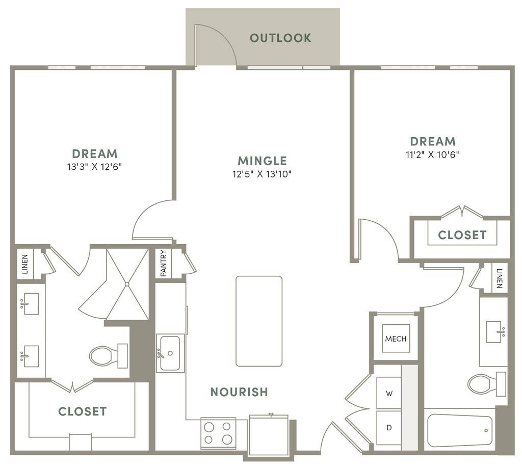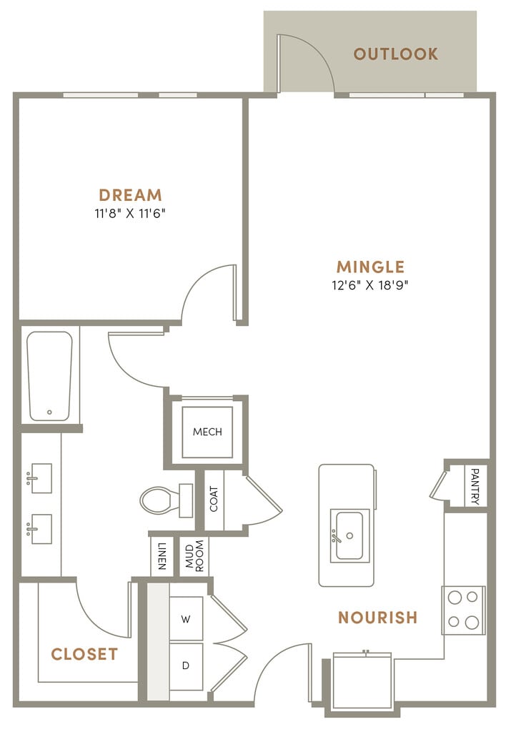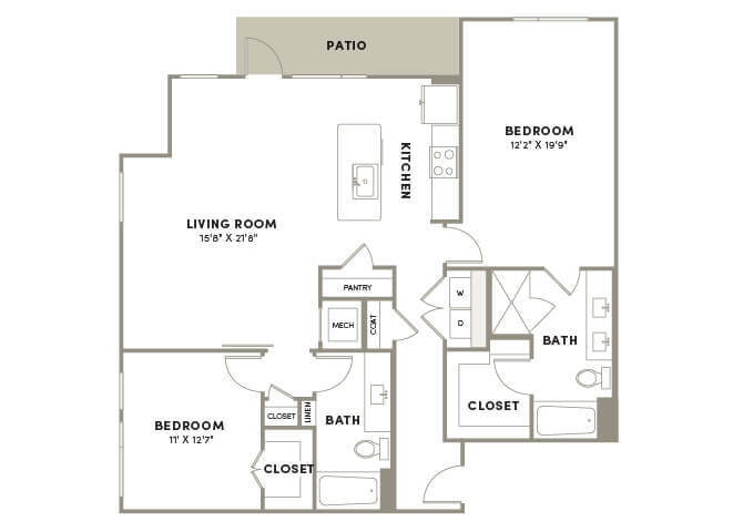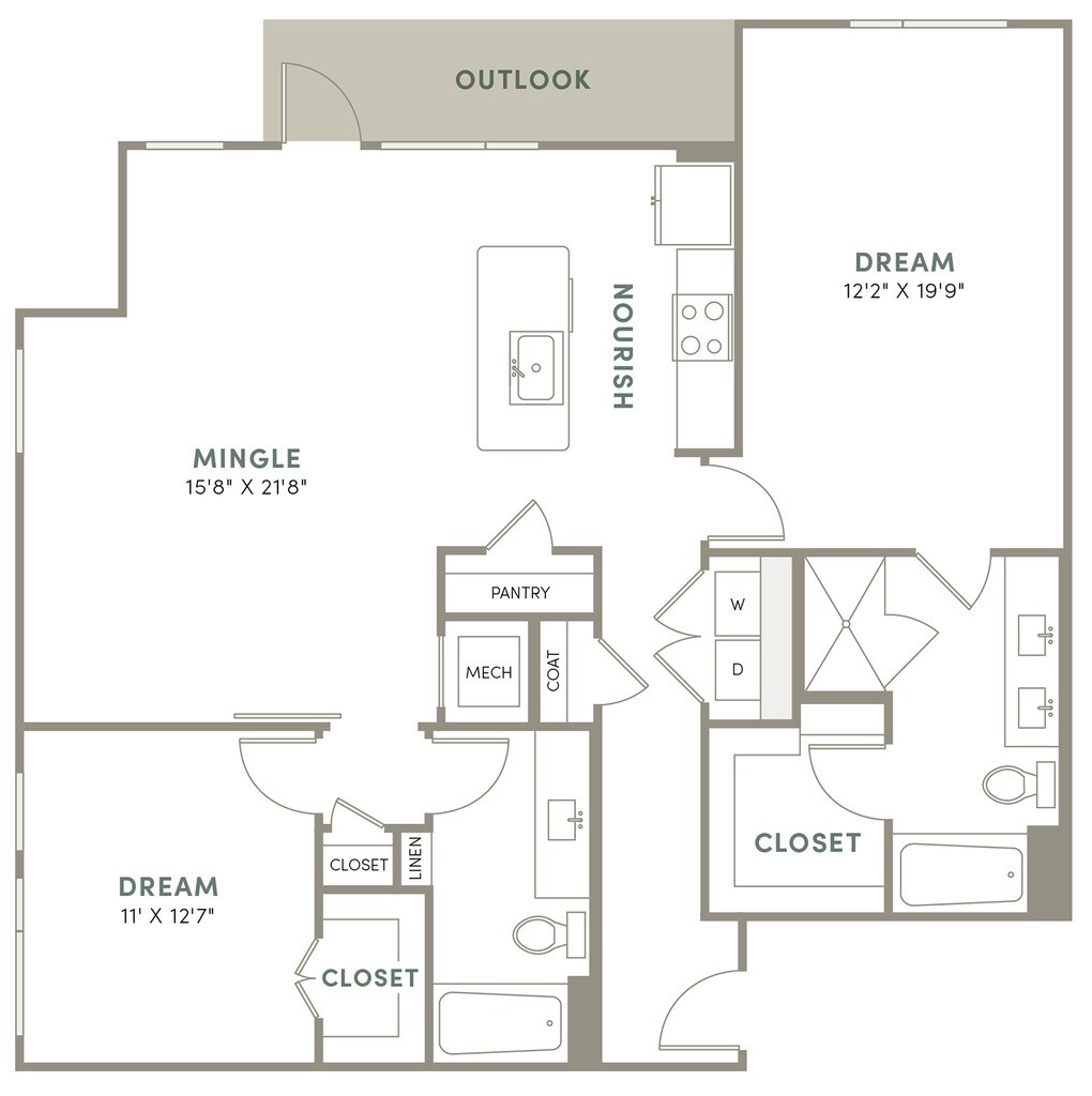 1 Bed, 1 Bath, 1197 sq ftAvailable NowLargest 1 BedroomThis is the largest 1 Bedroom at this PropertyModel Gallery