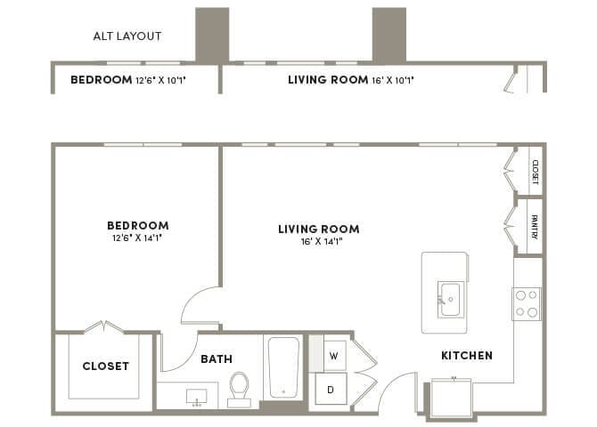 A01 - Floorplan 1 Apartment Unit: 1047Apartment Model: A01$1,3301 Bedroom, 1 Bath, 644 sq ftAvailable NowA14L