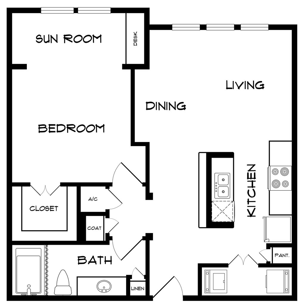 Studio, 1 Bath, 571 sq ftAvailable NowModel Gallery