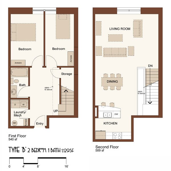 2 Beds, 1 Bath, 1129 sq ftModel Gallery