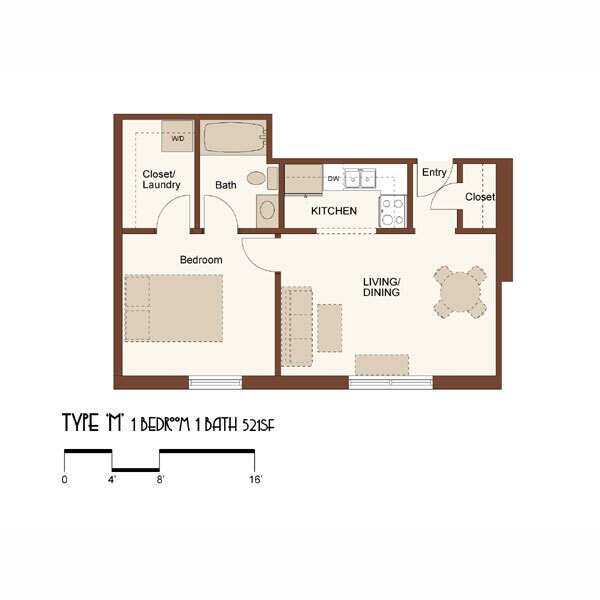 1 Bed, 1 Bath, 521 sq ftModel Gallery