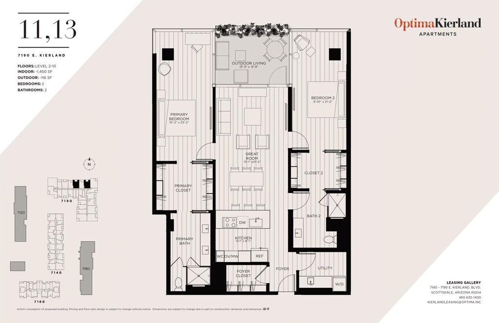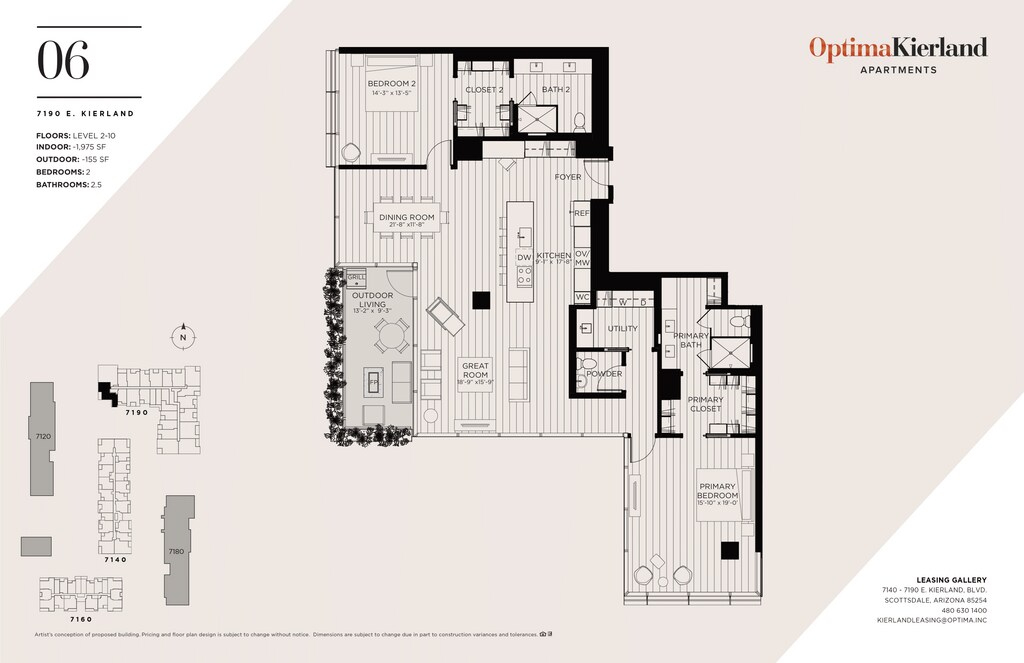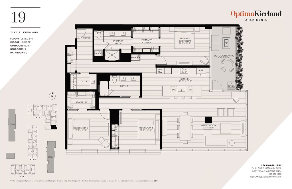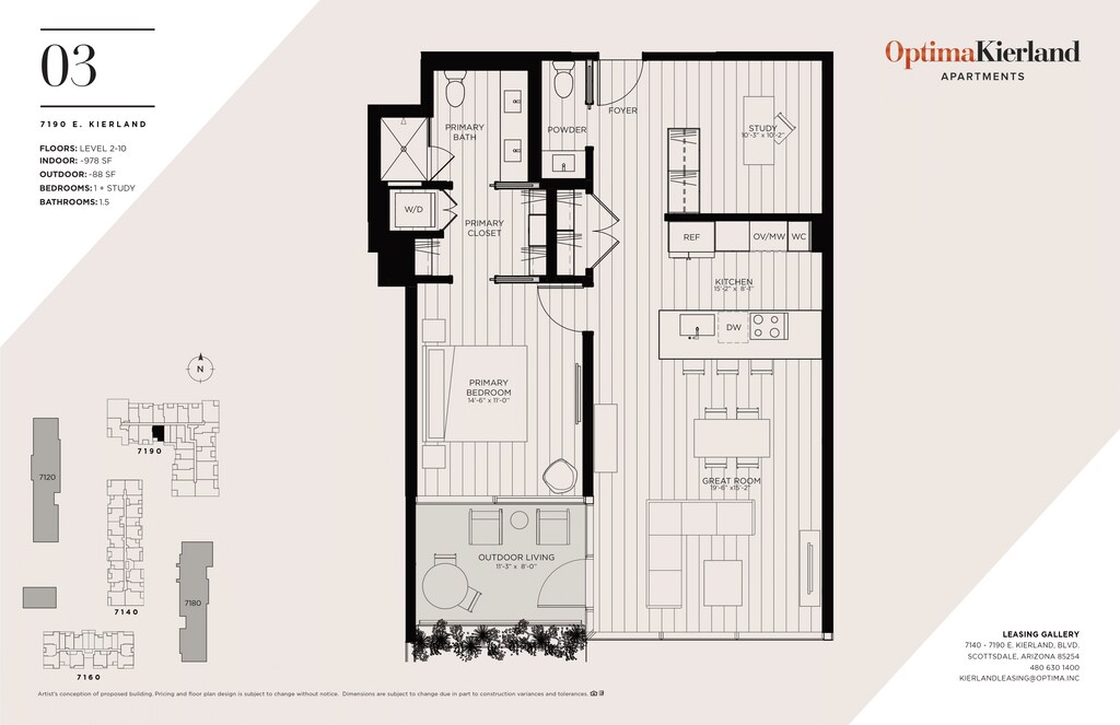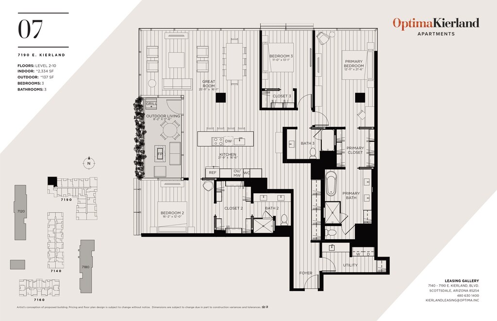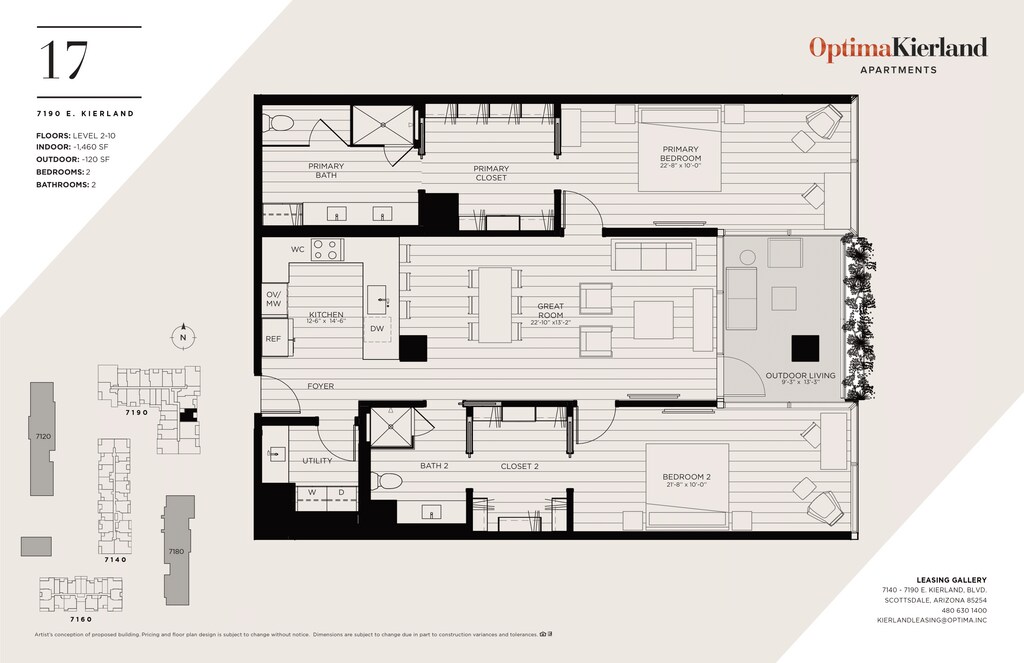 NEW 7190 TOWER NOW OPEN FOR LEASING Designed by award-winning architects David C. Hovey, FAIA, and David Hovey Jr., AIA, these luxurious new residences offer an experience of desert living unlike any other. The elegant, modern living spaces blend seamlessly with the outdoors, and exclusive amenities promote an overall lifestyle of health and well-being. Optima Kierland Apartments present an unparalleled opportunity. Set within Optima Kierlands spacious and tranquil park-like setting, the tower offers beautifully appointed residences, ranging from studios to three-bedrooms, as well as a rich array of amenities and services.
