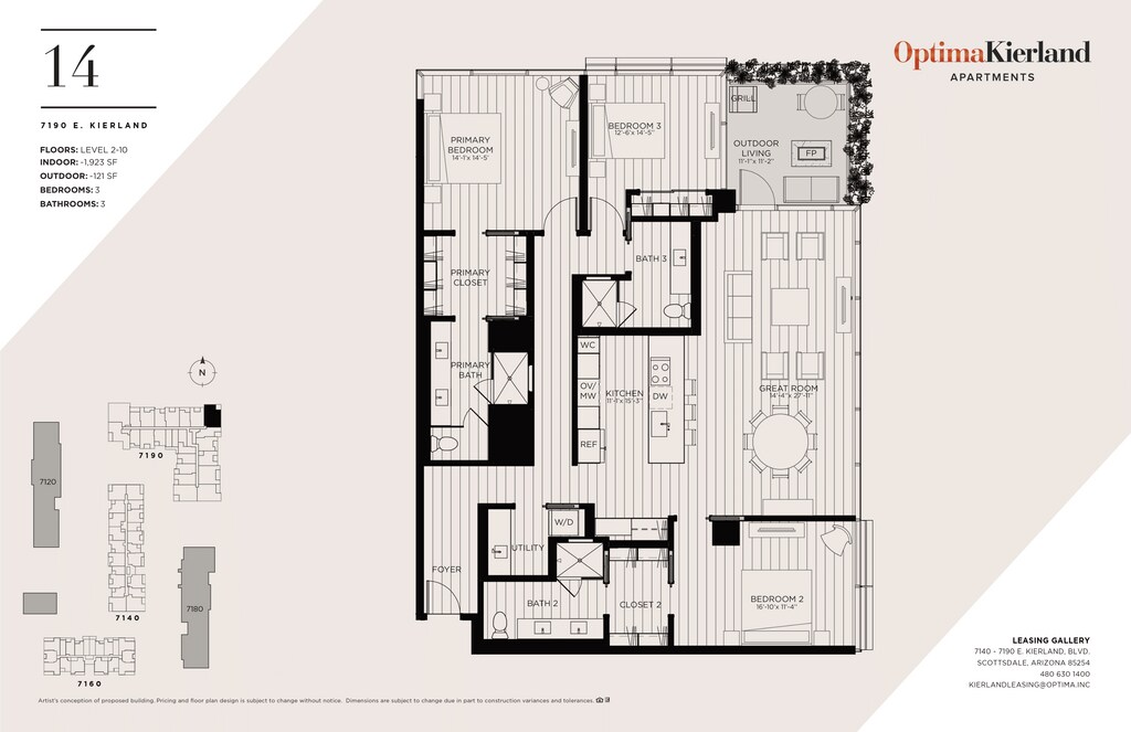 7190-14 - Floorplan 1 Apartment Unit: 90-0714Apartment Model: 7190-143 Bedroom, 3 Bath, 1923 sq ftAvailable February 9, 20267190-18