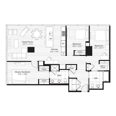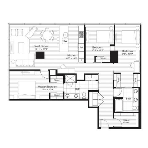 Tower 09 - Floorplan 1 Apartment Unit: 1609Apartment Model: Tower 091 Bedroom, 1 Bath, 881 sq ftAvailable NowTower 10