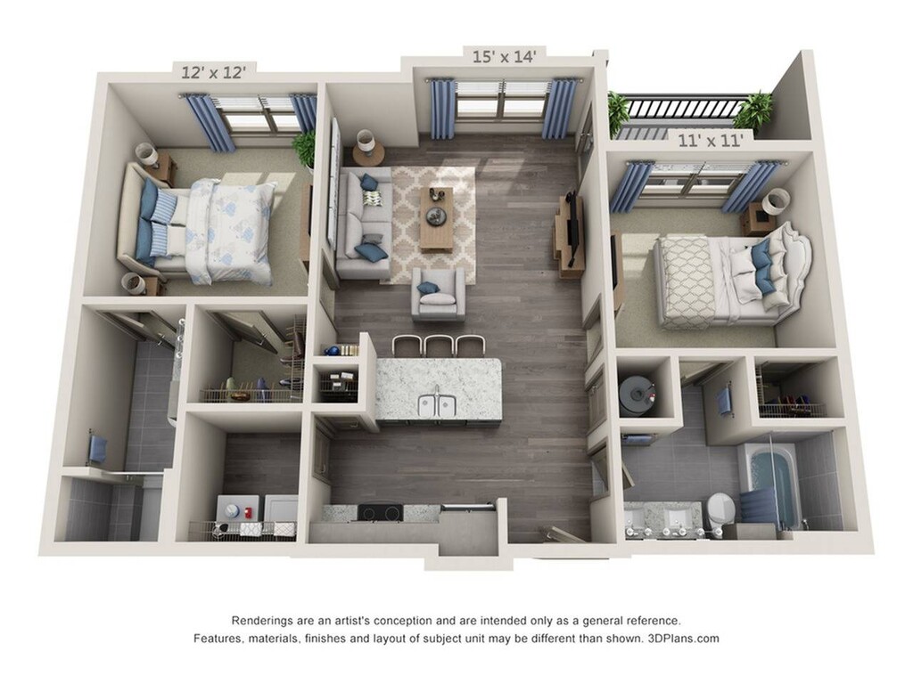 2 Beds, 2 Baths, 970 sq ftModel Gallery
