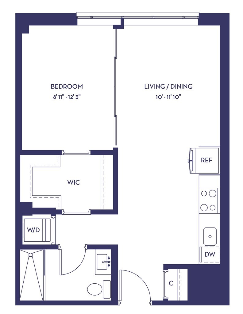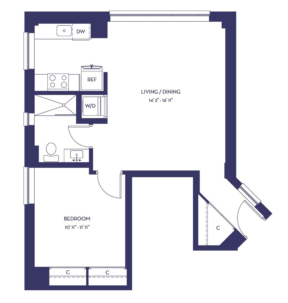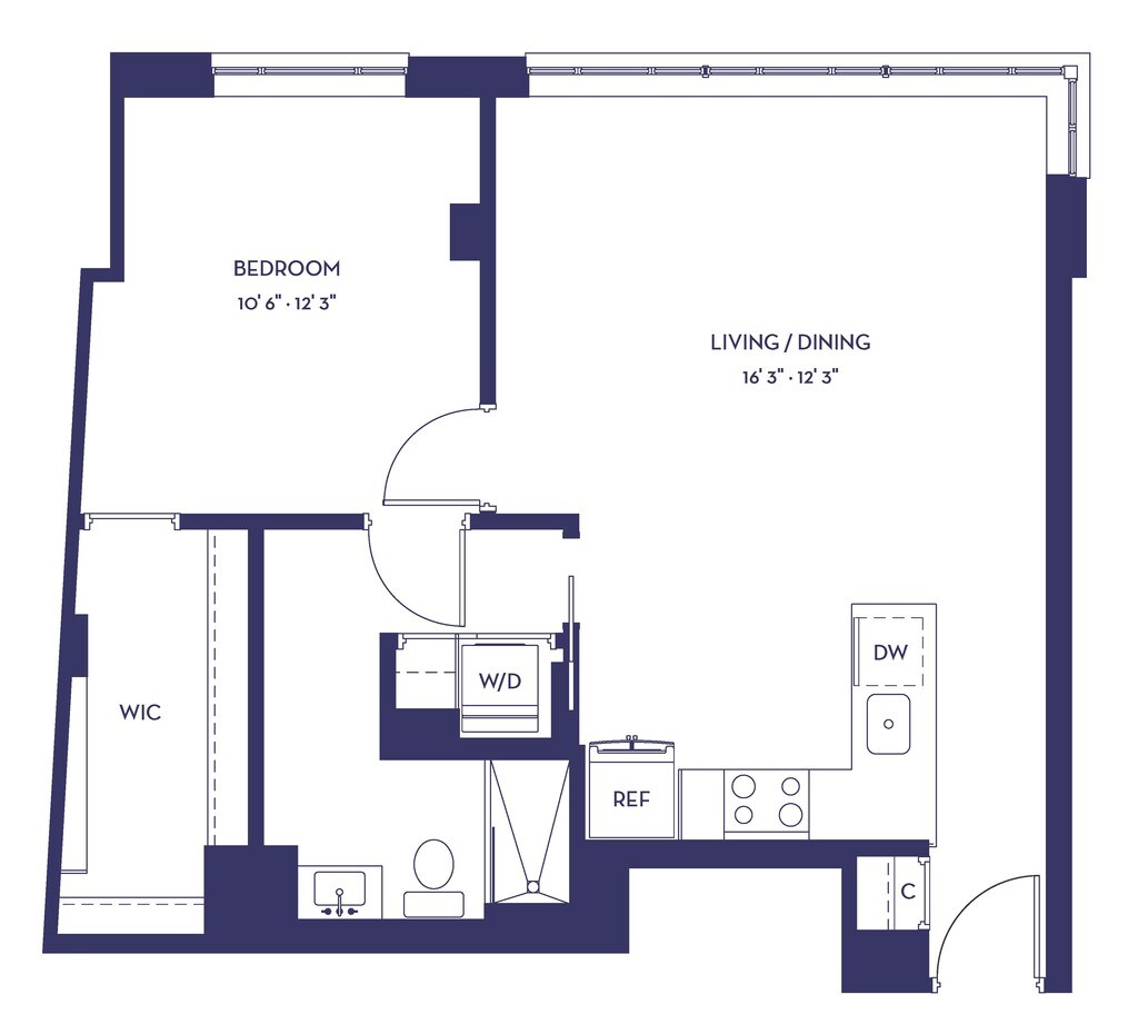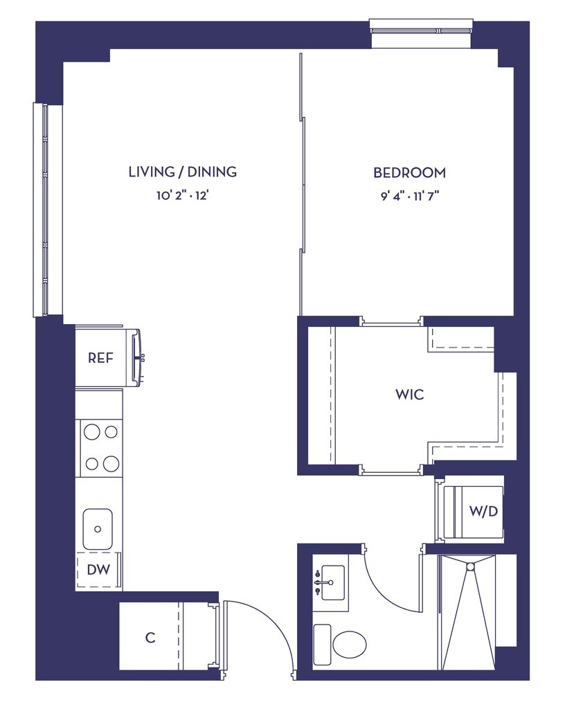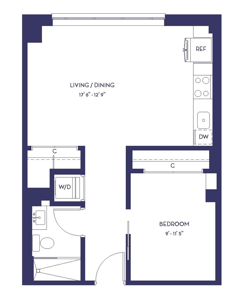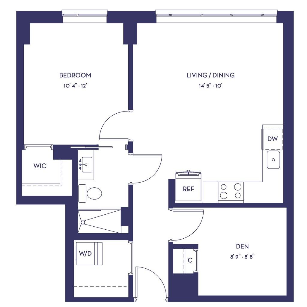 11JR - Floorplan 1 Apartment Unit: 611Apartment Model: 11JR$2,6701 Bedroom, 1 Bath, 532 sq ftAvailable Now08+Den