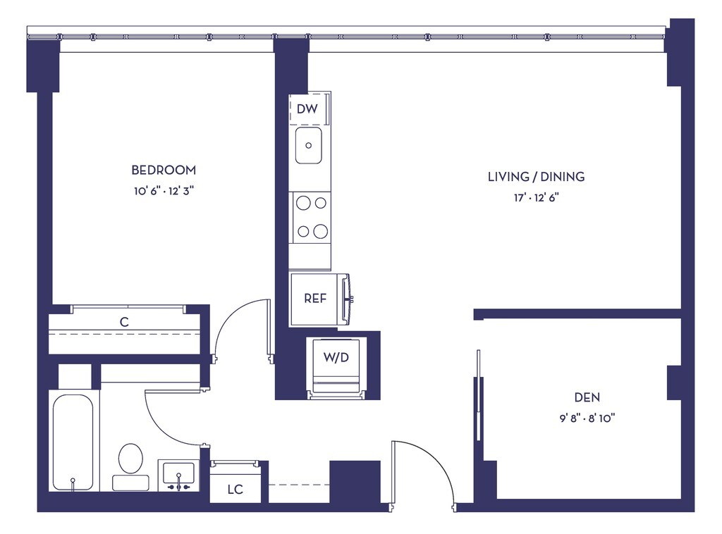 Apartment Model: 08+Den$3,0001 Bedroom, 1 Bath, 639 sq ftAvailable Now![]()
