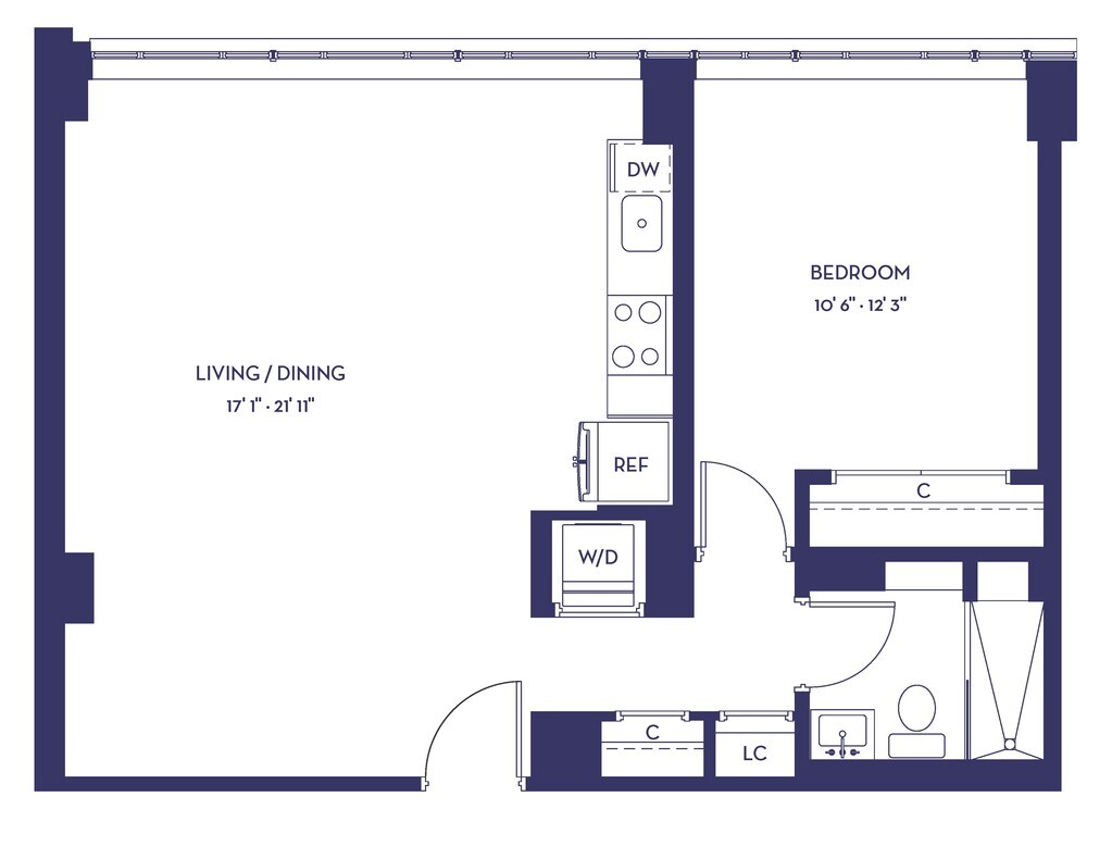 Apartment Model: 11JR$2,6701 Bedroom, 1 Bath, 532 sq ftAvailable Now![]()