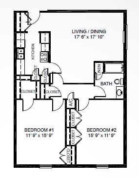 Apartment Model: 2X12 Bedroom, 1 Bath, 725 sq ftAvailable Now![]()