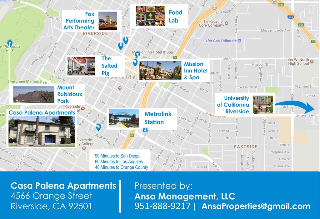 Beautiful 1920 Mediterranean one bedroom apartment located in a Historical District in Riverside with updated Air Conditioning and electric, walking distance to downtown. Great location in a hidden pocket on a low traffic street. Great neighborhood near enough to walk to downtown, but away from the bustle. Located in the beautiful, Prospect Place Historic District, one of Riversides first residential neighborhoods. The designation of a historical district saved it from development. $995 Move In Special - Call for Details! Your building is in the classic style of Mediterranean Revival and built in 1920. This style Combines the feel of Mediterranean homes, Italian villas and Spanish Revival homes, but they all have that breezy, sun-baked feel that will make your off hours seem like vacation. The building was designed and built originally as an apartment complex. The electric power has been updated.The house has a senses of tradition and tranquility and was designed before air conditioning, so it has excellent air flow, but for those hot days, AC is available. There are several palm trees on the property, for that truly California feel. The house has 2 patios and 3 balconies. The style combines several Mediterranean styles, and peaked in popularity in the 1920's and 30's. Several beautiful examples can be seen in Beverly Hills and Bel-Air. Features: - LED Lighting - Mini Split AC for less noise and increased energy efficiency. - Luxury Vinyl Plank Flooring - New Curtains - Newly Painted in a bright color - Cozy Feel - Large Closet - Owner pays Gas and water! - Sub Zero Full Size Refrigerator - super high end! Excellent location with easy freeway access. Only 3 miles, 8 minutes to UC Riverside. Monthly Income to be 3X the monthly rent Equal Housing Opportunity. This community does not discriminate on the basis of race, color, national origin, religion, sex, familial status, or disability. Advertised pricing and availability are subject to change without notice and cannot be guaranteed. individual apartments may have slight differences from the description and photos in this post. The information contained herein has been obtained through sources deemed reliable by Ansa Properties, but cannot be guaranteed for its accuracy. We recommend to the prospect that any information, which is of special interest, should be obtained through independent verification. ALL MEASUREMENTS ARE APPROXIMATE.