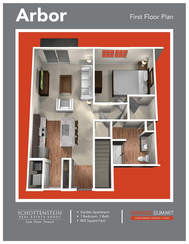 - 1 Bedroom- Arbor- From $1,4101 Bed, 1 Bath, 805-880 sq ftAvailable Now- Model Gallery- Floorplans- Availability Details- Price - Availability Date - Unit - Sq Ft - From $1,410 - Available Now - Arbor - 805-880 sq ft - Model Amenities and Features- Features- Air Conditioning