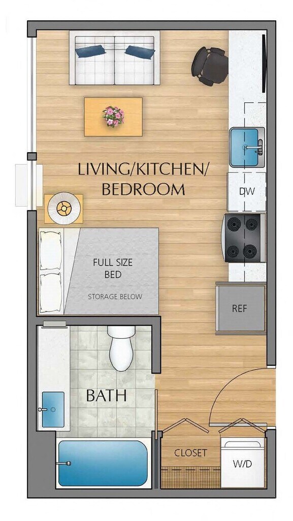 Studio, 1 Bath, 366 sq ftLargest StudioThis is the largest Studio at this PropertyModel Gallery