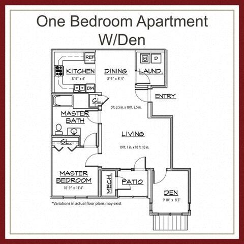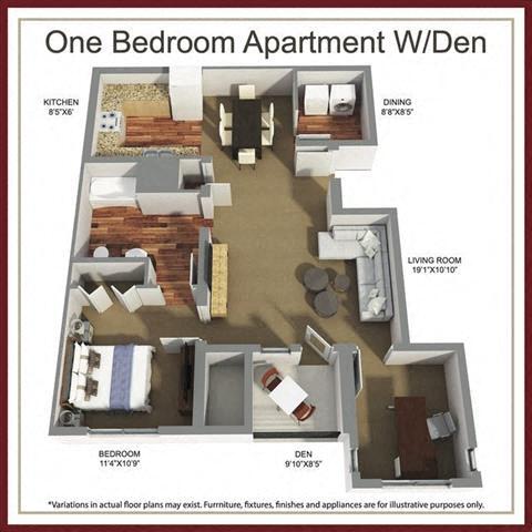 One Bedroom Apartment - Floorplan 16 One Bedroom Apartment With a Den