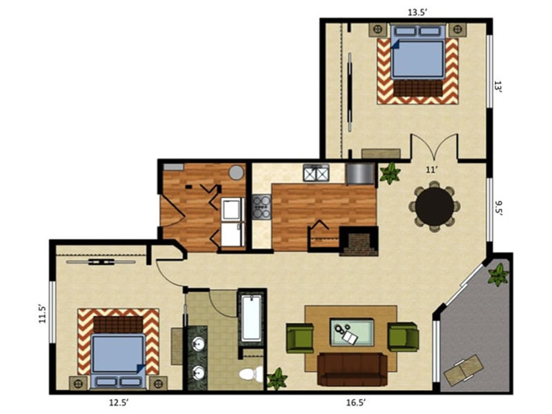 2 Bed 1 Bath - Floorplan 2 2 Bed 2 Bath