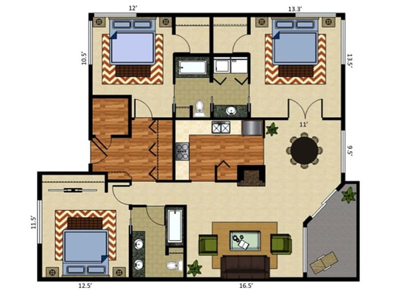 2 Bed 2 Bath - Floorplan 2 3 Bedrooms