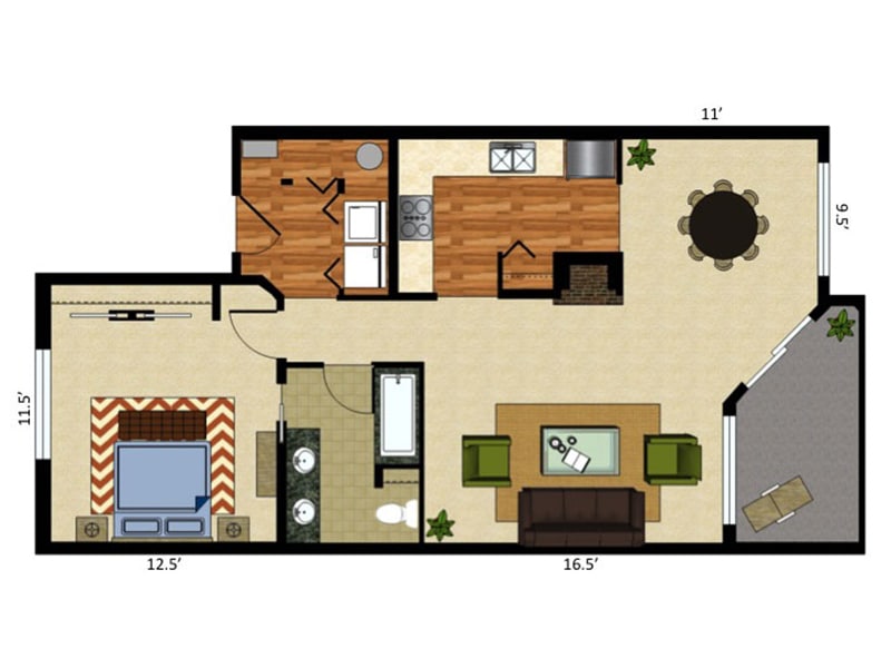 1 Bed 1 Bath - Floorplan 1 ![]()