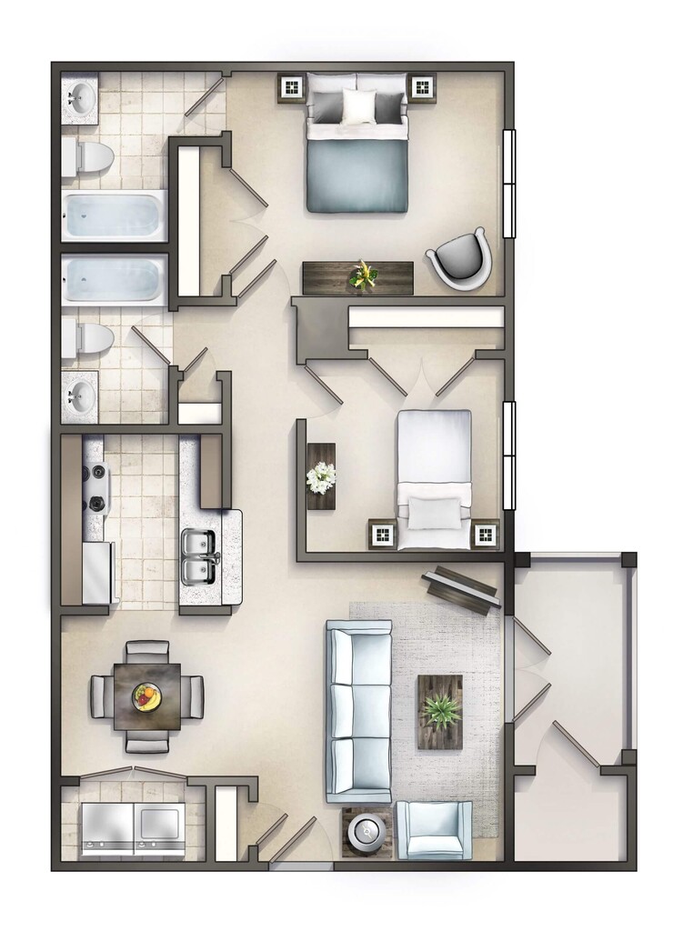 2 Beds, 2 Baths, 1080 sq ftAvailable NowModel Gallery