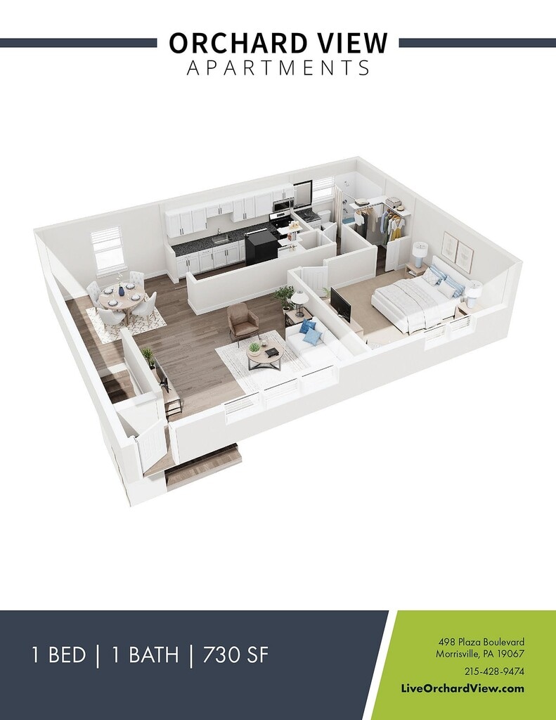 Newly renovated 1 & 2 bedroom apartments with in-unit laundry and fully equipped kitchens. Parking on-site, washer and dryer included, pet-friendly and tucked away in a great location in Morrisville, PA. Call or visit our leasing office today to tour and see why Orchard View is a great place to call home!