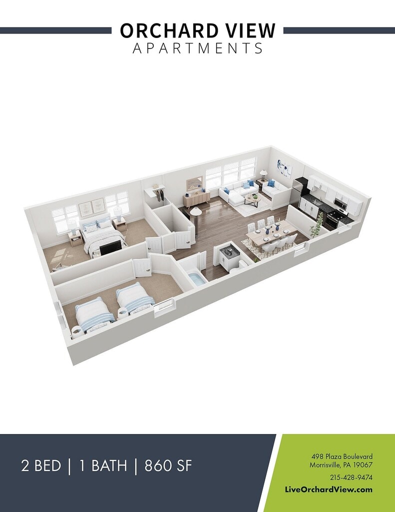 2 Beds, 1 Bath, 860 sq ftAvailable NowModel Gallery