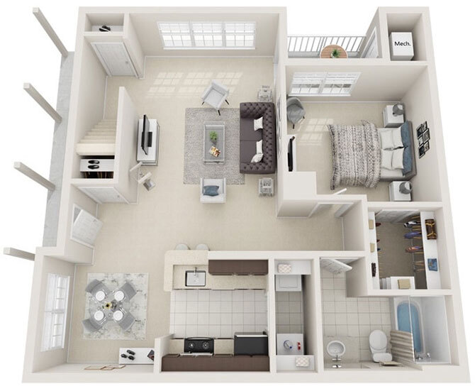 1 Bed, 1 Bath, 1023-1270 sq ftPlus FeesAvailable NowLargest 1 BedroomThis is the largest 1 Bedroom at this PropertyModel Gallery