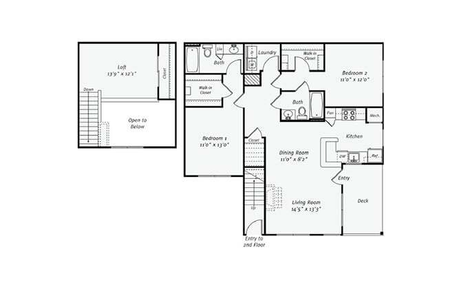 Macoun with Loft Classic - Floorplan 2 2 Bedrooms