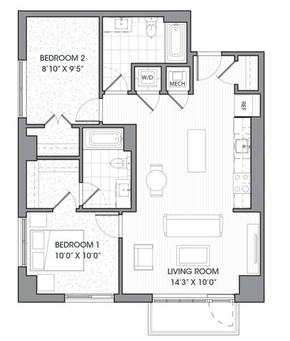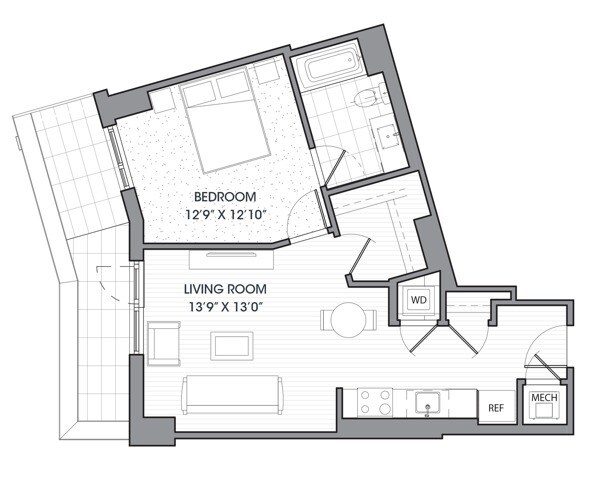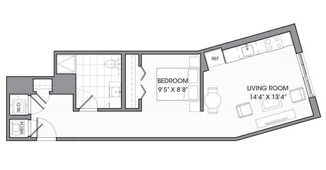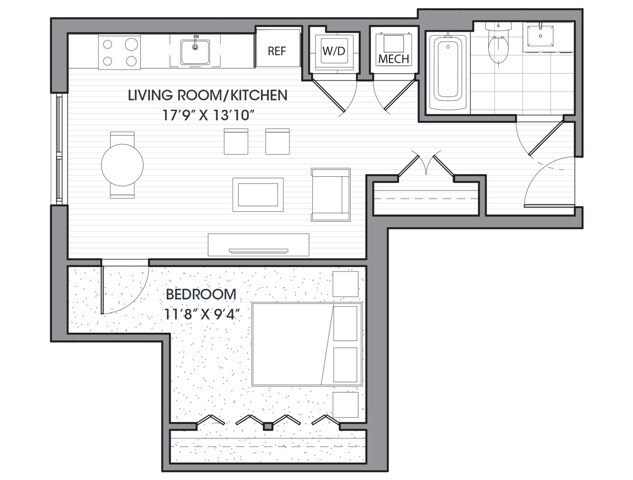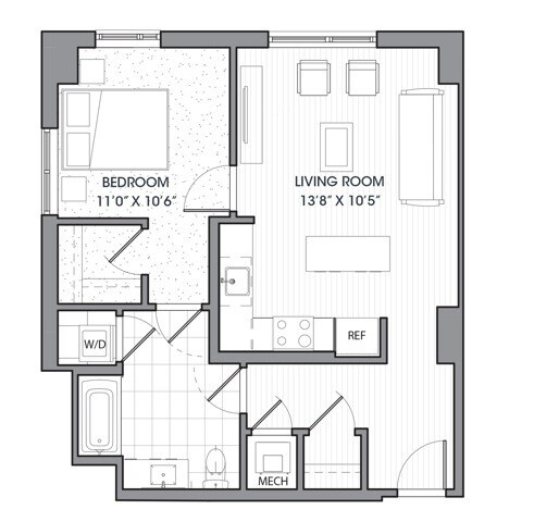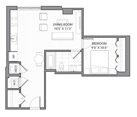 Apartment Model: One Bedroom One Bath (661 SF)From $2,4851 Bedroom, 1 Bath, 661 sq ftAvailable NowFloor plans are artist's rendering. All dimensions are approximate. Actual product and specifications may vary in dimension or detail. Not all features are available in every rental home. Prices and availability are subject to change. Base rent is based on monthly frequency. Additional fees may apply, such as but not limited to package delivery, trash, water, amenities, etc. Deposits vary. Please see a representative for details.