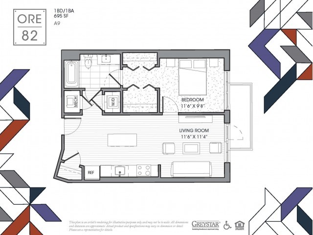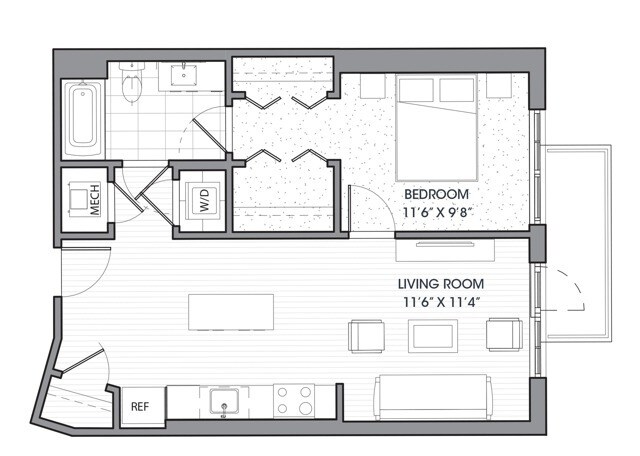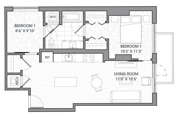 Apartment Model: One Bedroom One Bath (632 SF)From $1,9681 Bedroom, 1 Bath, 632 sq ftAvailable NowFloor plans are artist's rendering. All dimensions are approximate. Actual product and specifications may vary in dimension or detail. Not all features are available in every rental home. Prices and availability are subject to change. Base rent is based on monthly frequency. Additional fees may apply, such as but not limited to package delivery, trash, water, amenities, etc. Deposits vary. Please see a representative for details.