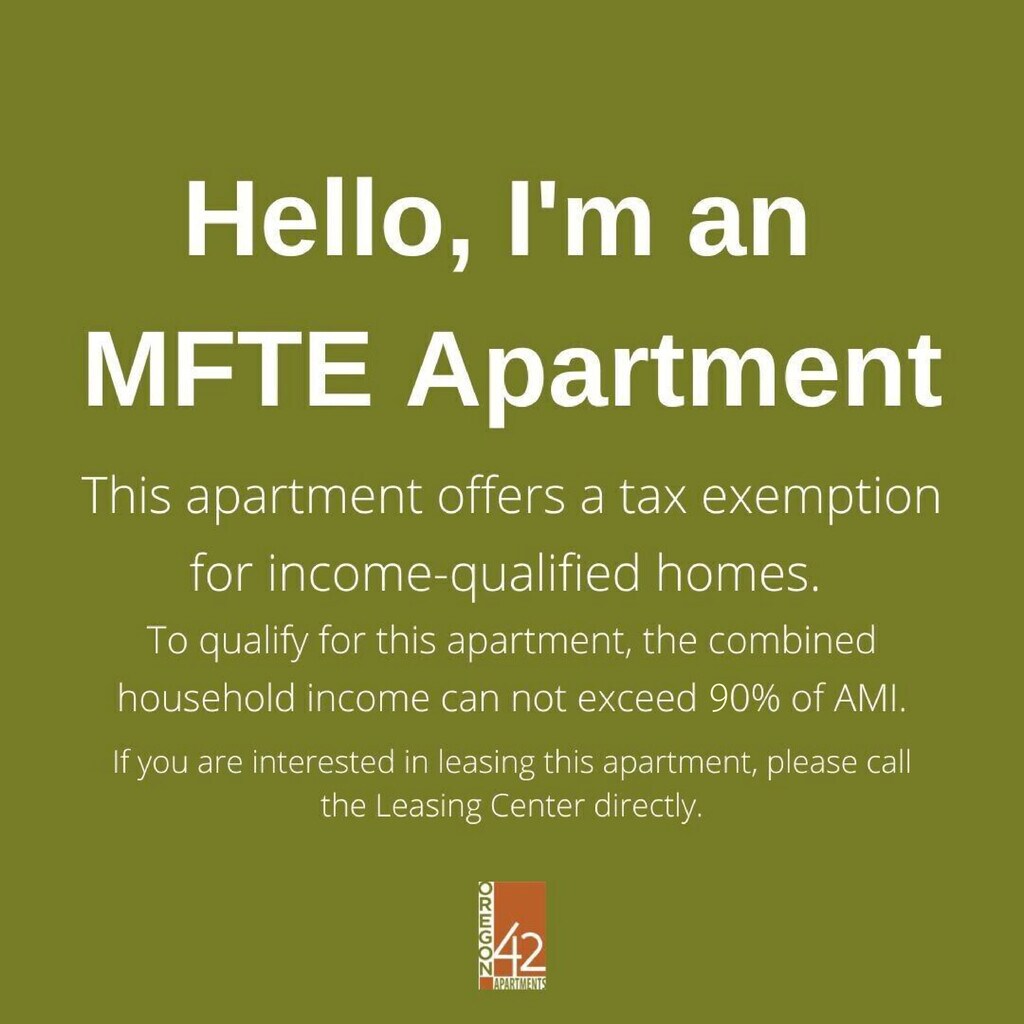 Apartment Model: 1 Bedroom 1 Bath MFTECall For Rates1 Bedroom, 1 Bath, sq ftUnavailable1 Bedroom 1 Bath MFTE - Floorplan 1 1 Bedroom 1 Bath