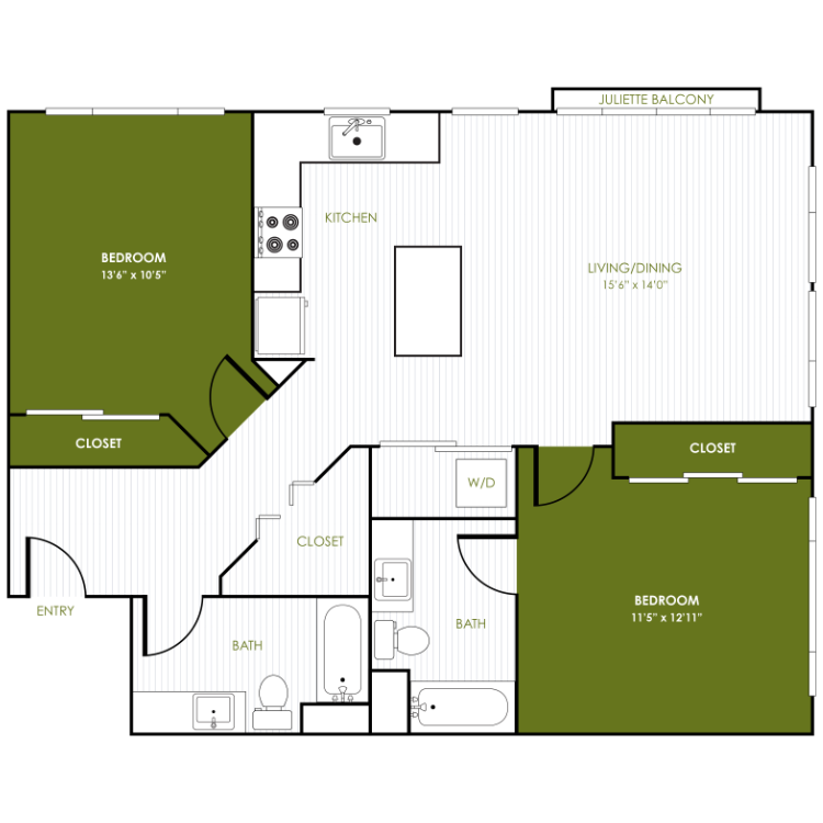 1 Bed, 1 Bath, 556 sq ftModel Gallery