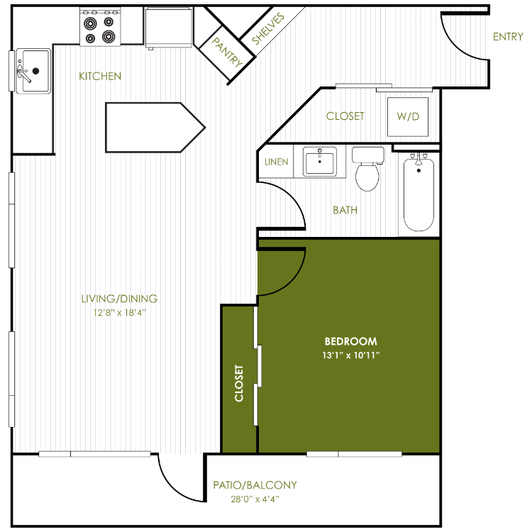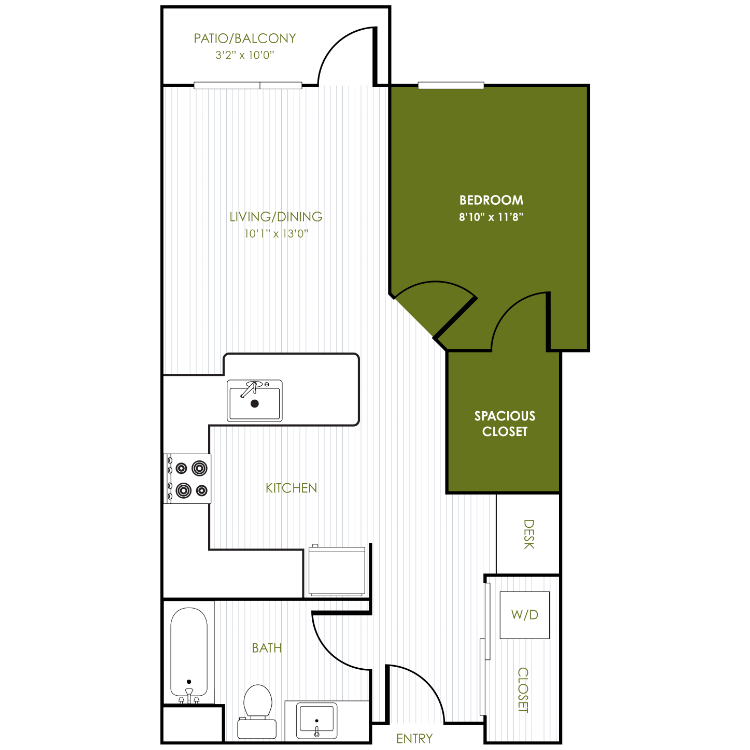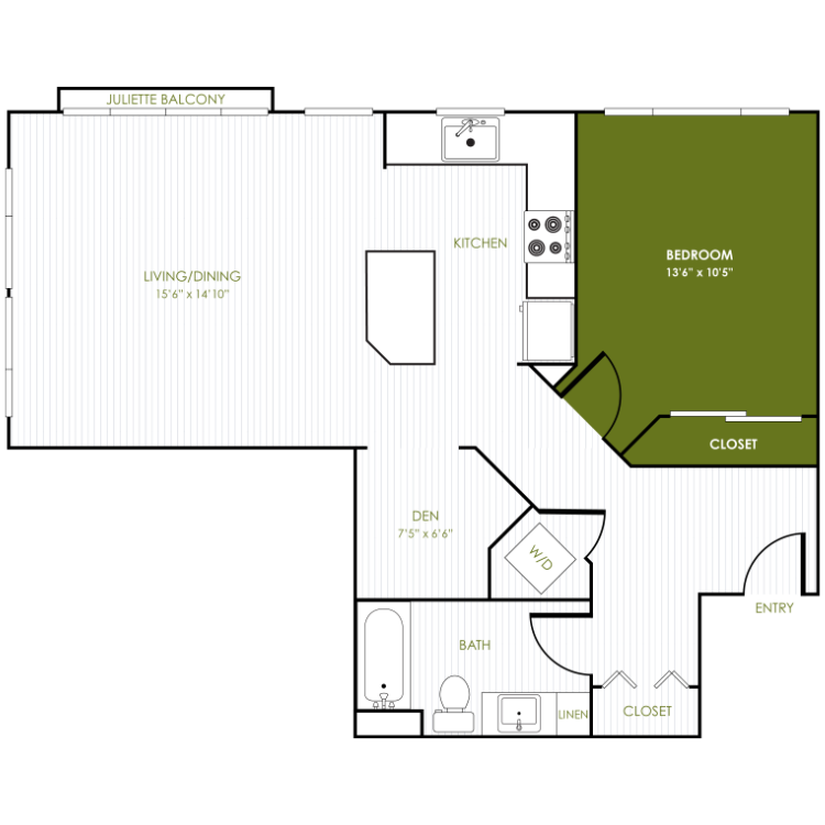 1 Bed, 1 Bath, 580 sq ftModel Gallery