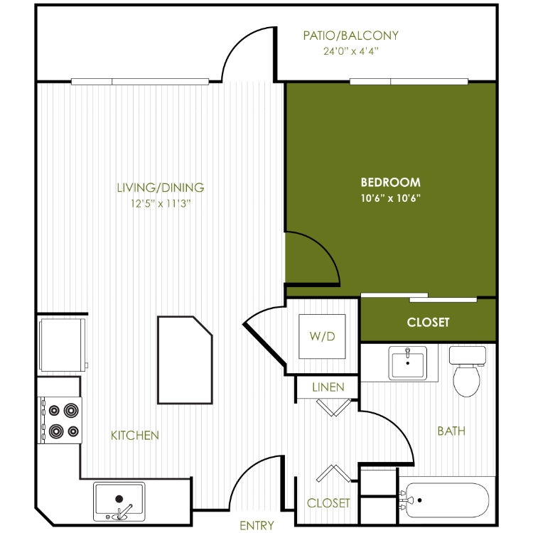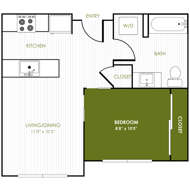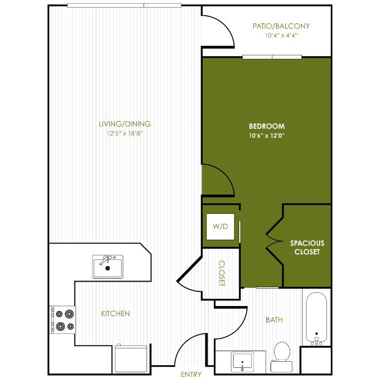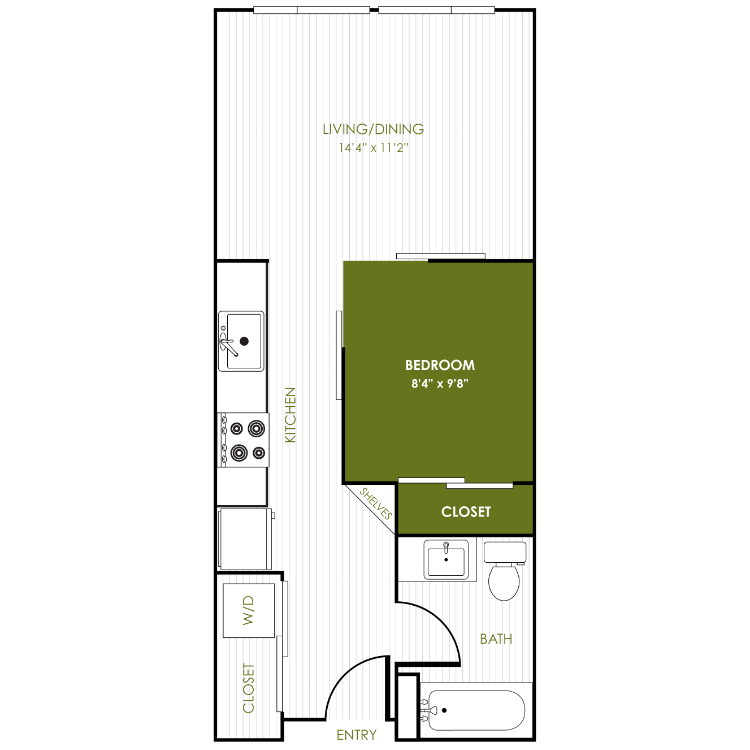 Studio, 1 Bath, 505 sq ftAvailable NowLargest StudioThis is the largest Studio at this PropertyModel Gallery