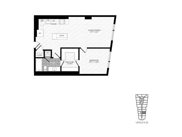 Jr 1A - Floorplan 1 Apartment Unit: 0-1808Apartment Model: Jr 1A$2,3951 Bedroom, 1 Bath, 525 sq ftAvailable NowFloorplan 1M