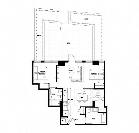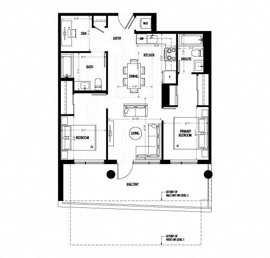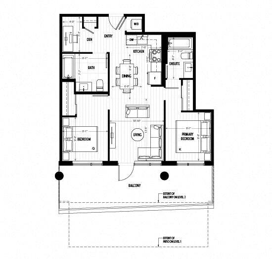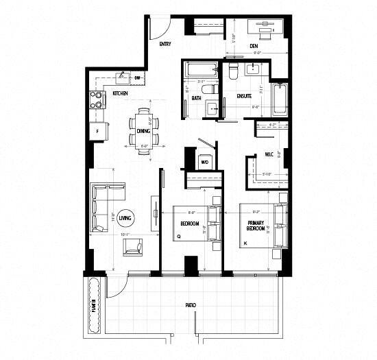 2 Bedroom + den - Floorplan 3 Apartment Unit: 1114Apartment Model: 2 Bedroom + den2 Bedroom, 2 Bath, 791 sq ftAvailable NowApartment Unit: 1115Apartment Model: 2 Bedroom + den2 Bedroom, 2 Bath, 851 sq ftAvailable April 30, 20262 Bedroom