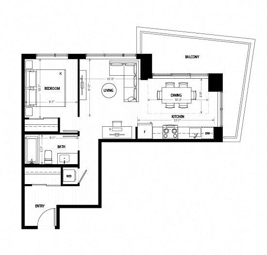 Jr 1 Bedroom - Floorplan 7 Apartment Unit: 1101Apartment Model: Jr 1 Bedroom1 Bedroom, 1 Bath, 521 sq ftAvailable Now1 Bedroom