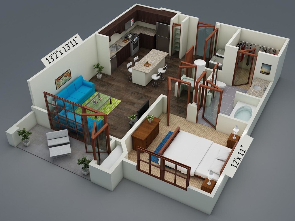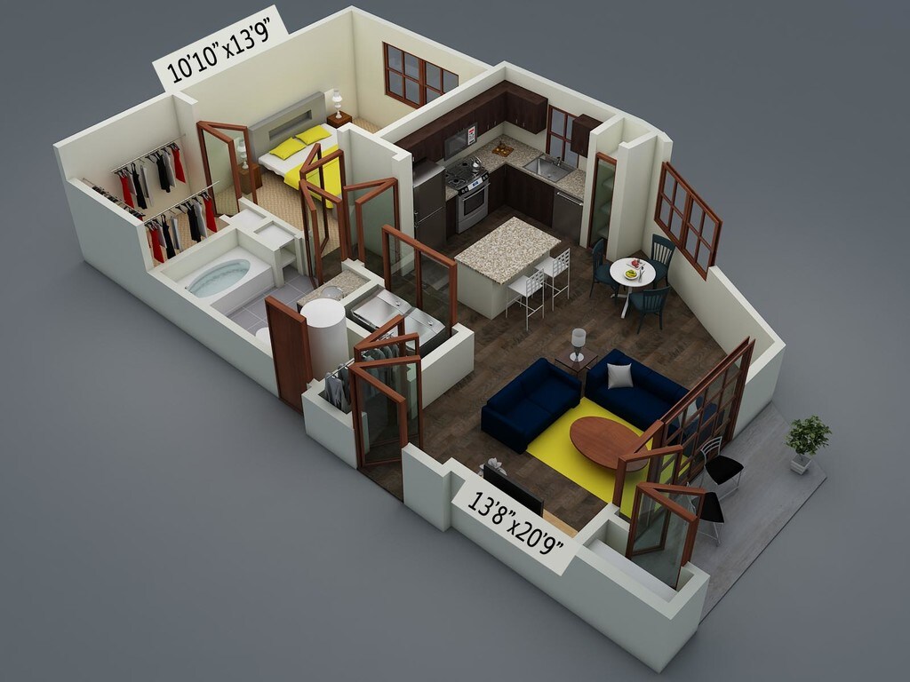 1 Bed, 1 Bath, 828 sq ftModel Gallery