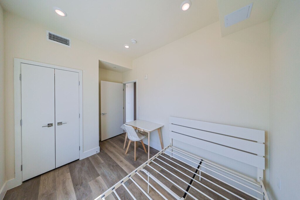 Our units feature a vibrant modern design and fully furnished common areas for a comfortable lifestyle. Each room is equipped with a full bed, desk, nightstand, and a wardrobe/closet. Enjoy the convenience of your own washer/dryer in every unit! Elevate your downtime on our communal sky deck offering breathtaking views of the LA skyline and USC, including a glimpse of the iconic Hollywood sign. With a range of layouts to suit your preferences, our student housing is designed to meet all your needs. Welcome to a stylish, convenient, and unforgettable living experience! Inside DPS patrol zone Just one block from USC campus Few blocks away from Smart and Final In-unit washer/dryer
