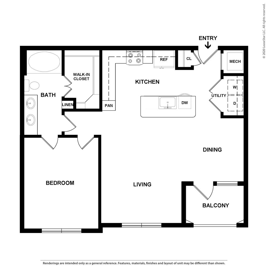 - 1 Bedroom- Floorplan A1- From $1,3691 Bed, 1 Bath, 636 sq ftAvailable Now- Model Gallery- Floorplans- Availability Details- Price - Availability Date - Unit - Sq Ft - View Details - $1,434 - Available Now - 1124 - 636 - $1,434 - Available Now - 1141 - 636 - $1,369 - Available Now - 1146 - 636 - Model Amenities and Features- Features- Washer/Dryer