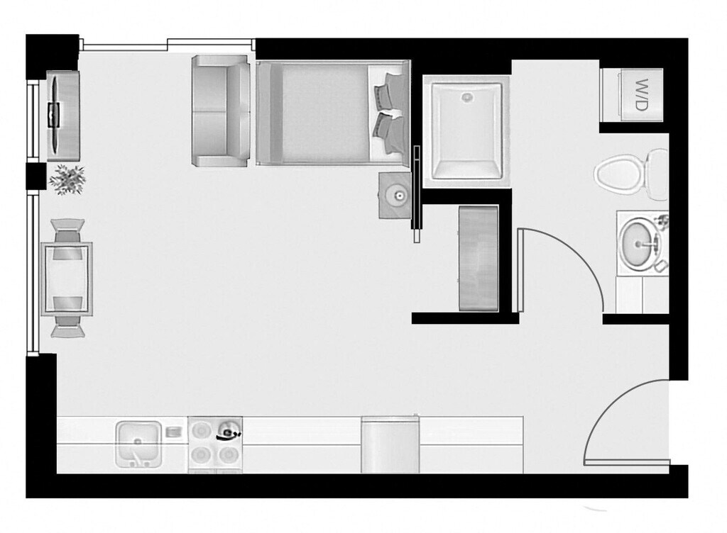 Studio - Floorplan 1 Apartment Unit: 111Apartment Model: Studio$1,650Studio, 1 Bath, 388 sq ftAvailable Now![]()