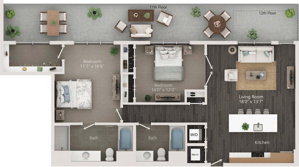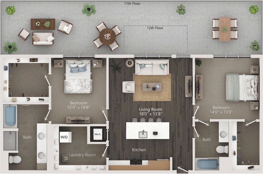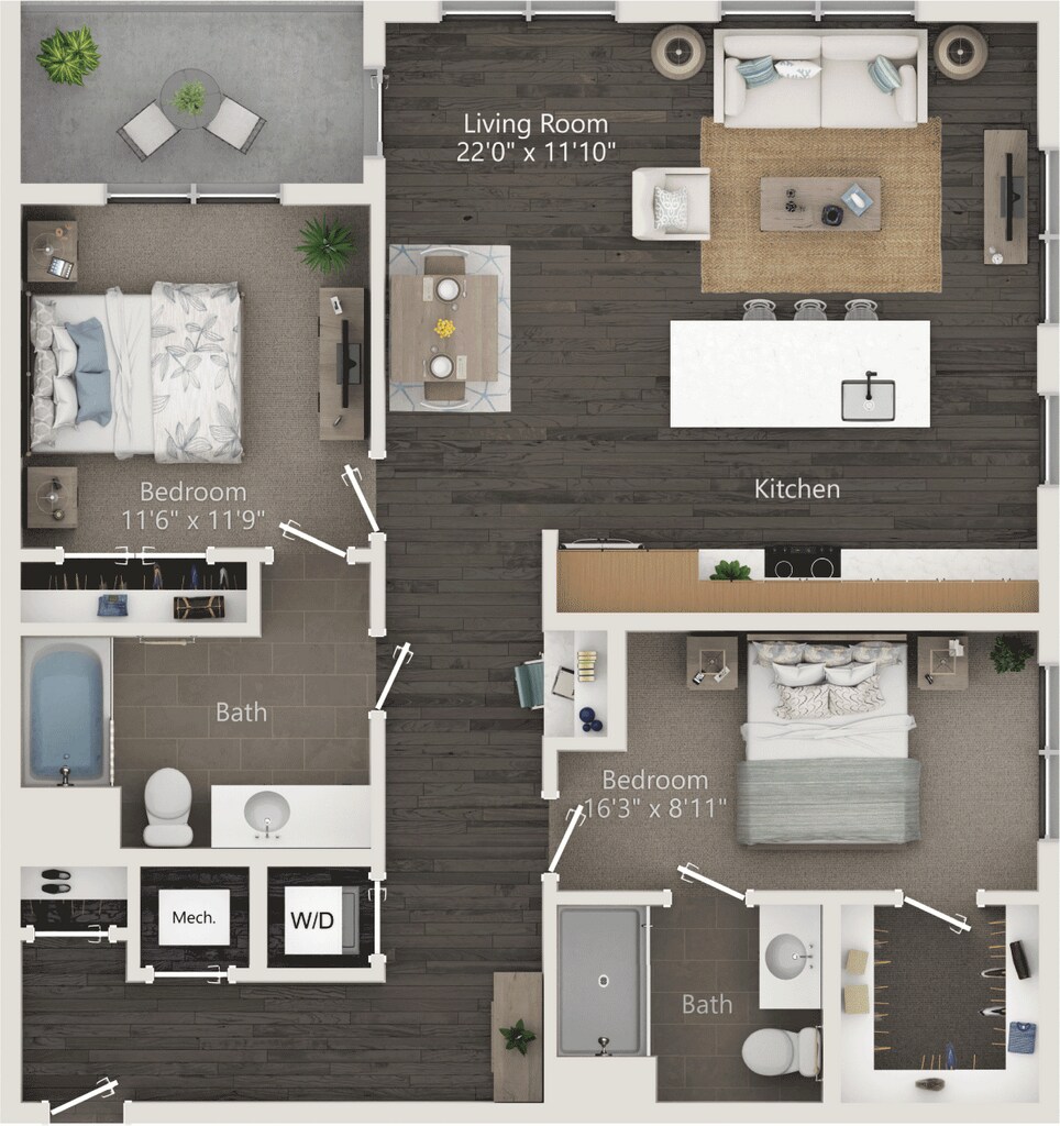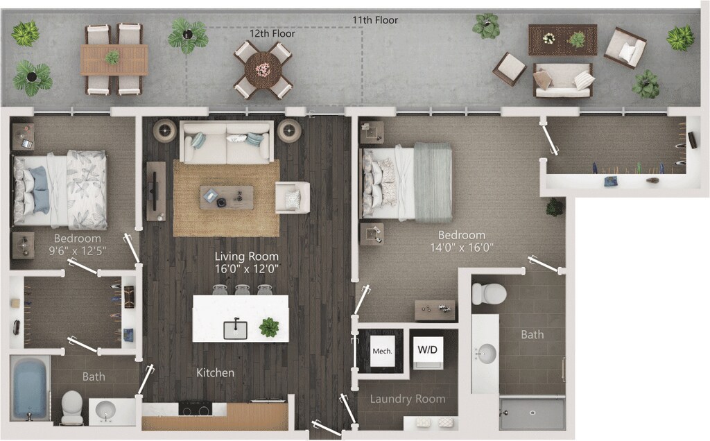 1 Bed, 1 Bath, 726 sq ftAvailable NowModel Gallery