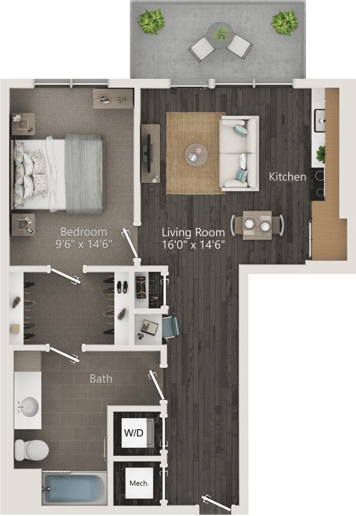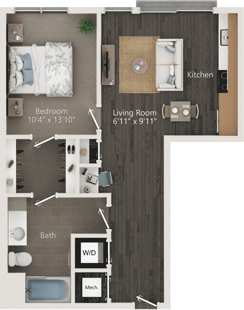 1 Bed, 1 Bath, 704 sq ftAvailable NowModel Gallery