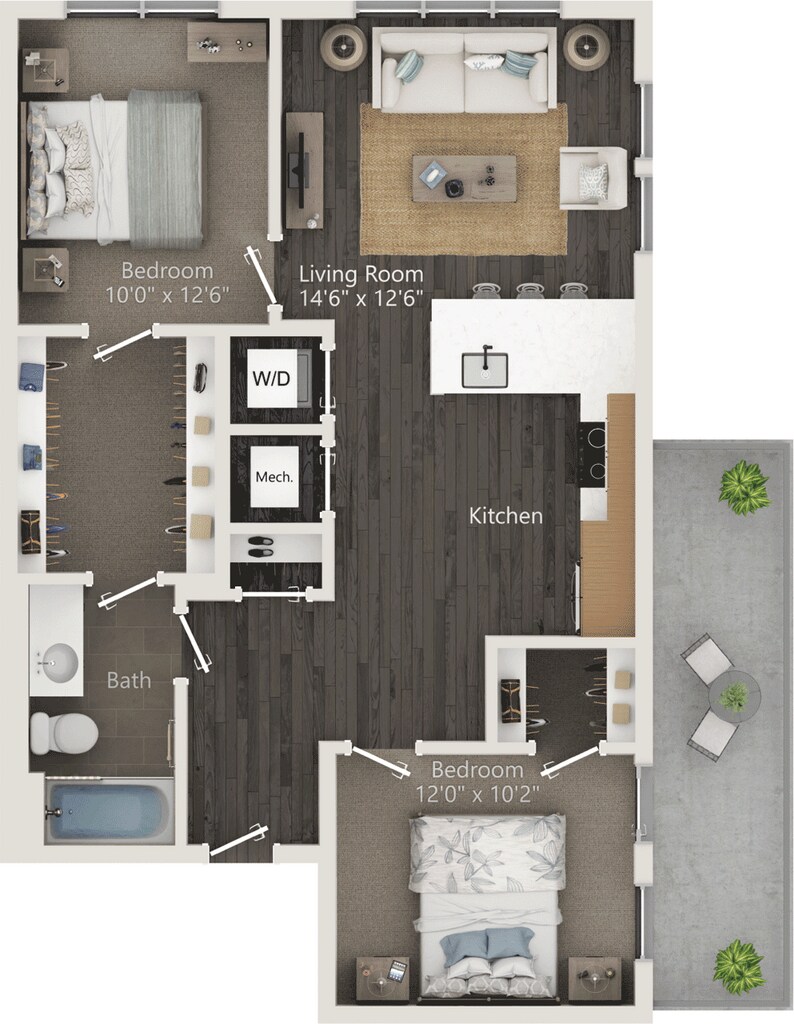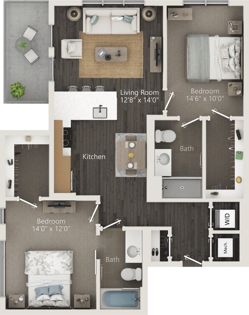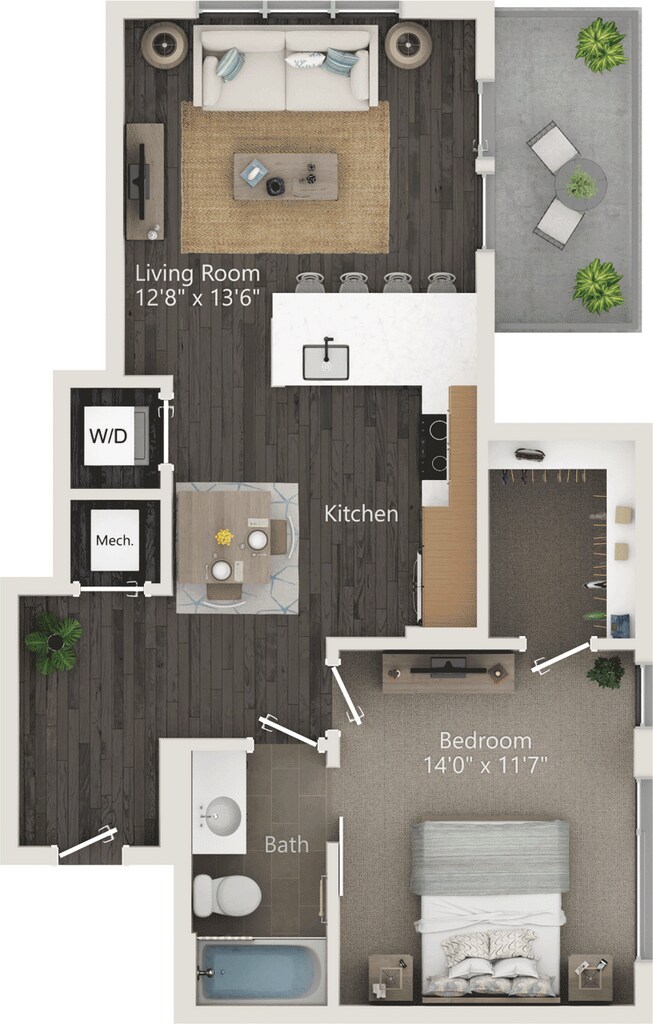 Apartment Model: A3From $1,3451 Bedroom, 1 Bath, 704 sq ftAvailable Now![]()