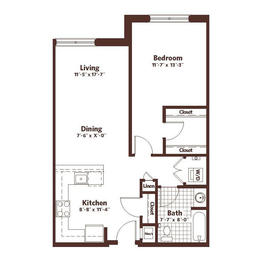 1 Bed, 1 Bath, 828 sq ftAvailable NowLargest 1 BedroomThis is the largest 1 Bedroom at this PropertyModel Gallery