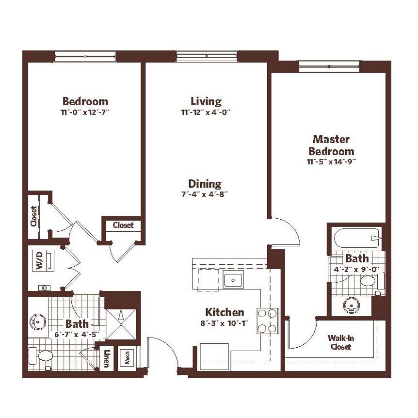 Apartment Model: B2Call For Rates2 Bedroom, 2 Bath, 1075 sq ftUnavailableFloor plans are artist's rendering. All dimensions are approximate. Actual product and specifications may vary in dimension or detail. Not all features are available in every rental home. Prices and availability are subject to change. Base rent is based on monthly frequency. Additional fees may apply, such as but not limited to package delivery, trash, water, amenities, etc. Deposits vary. Please see a representative for details.