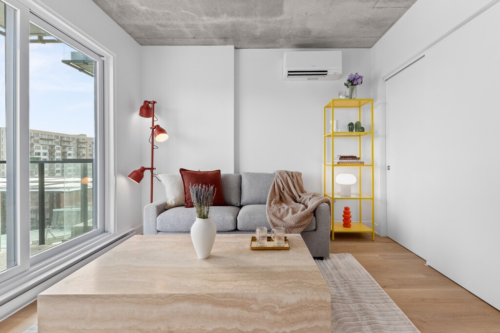 Live connected to everything! Discover Ostral Apartments, the one and only connected rental project directly linked to the Longueuil–Université-de-Sherbrooke metro station. Enjoy a prime location right above the metro, close to local shops and neighborhood amenities, in the heart of Longueuil’s new downtown. All-inclusive package: • Six appliances (refrigerator, stove, dishwasher, microwave, washer, and dryer) • Internet • Electricity • Heating and air conditioning In addition, indoor parking spaces ($170/month) and storage units ($40/month) are available for rent. Ostral Apartments offers a variety of luxurious common areas: • Fitness room with sauna • Screening room • Outdoor pool with a large terrace, grassy area, and BBQ • Lounge area • Game room with VR headsets and poker tables And much more! Contact us now!